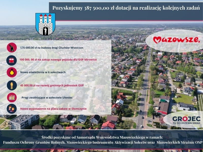 Dobre wiadomości dla Gminy Grójec od Samorządu Województwa Mazowieckiego. Łączna kwota dofinansowania to 378 500 zł.