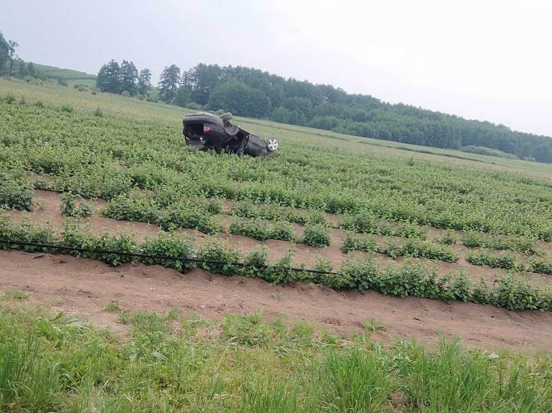 Po przyjeździe na miejsce zdarzenia policjanci zastali znajdujący się w polu, w odległości 50-70 metrów od drogi, wywrócony na dach pojazd.