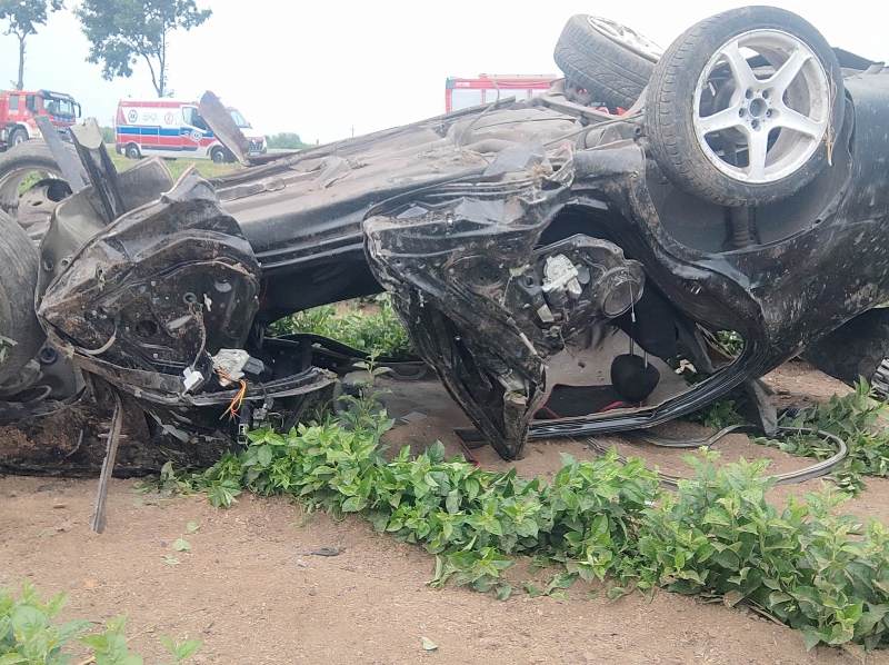 – Na miejsce zdarzenia zostały wezwane cztery zastępy straży pożarnej – dwa z JRG Białobrzegi oraz z OSP Przybyszew i OSP Rykały. Po dojechaniu na teren wypadku zastaliśmy dwie karetki zespołu ratownictwa medycznego. Z informacji uzyskanych od świadków wynikało, że samochód wpadł w poślizg, wypadł z trasy, koziołkował i wylądował na dachu, na polu sadzonek z małymi drzewkami. Na miejscu nie zastano nikogo we wraku, prawdopodobnie osoby wypadły w trakcie koziołkowania z pojazdu. Ratownicy przystąpili do zabezpieczania miejsca zdarzenia – zamknięto drogę w obydwu kierunkach i przystąpiono do pomocy przedmedycznej pozostałym poszkodowanym. Odbył się triaż. Pomagaliśmy zespołowi ratownictwa medycznego przy poszkodowanych. Dojeżdżały następnie karetki. Po triażu najciężej poszkodowani w pierwszej kolejności zostali opatrzeni i zabrani do szpitala. Na miejscu było łącznie pięć karetek, pięciu poszkodowanych zostało przetransportowanych do szpitala  – relacjonuje nam st. asp. Jacek Podwysocki, oficer prasowy  komendanta powiatowego Państwowej Straży Pożarnej w Białobrzegach.