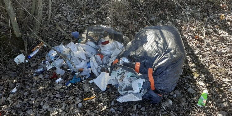 Worki z odpadami poremontowymi zostały zauważone przez mieszkańców gminy Pniewy (powiat grójecki) na początku marca. Zgłoszenie o odpadach przy drodze Konie – Wilczoruda trafiło w ubiegłym tygodniu do sekretarza gminy Pniewy – Macieja Michalskiego. Dzięki wydobytym z odpadów danym sprzedażowym udało ustalić się podejrzanego o zaśmiecanie. Na podstawie ustalonych danych dzielnicowy z tej gminy – mł. asp. Piotr Tomczak przeprowadził czynności służbowe ze sprawcą zaśmiecenia. Mieszkaniec gminy Lesznowola przyznał się do winy, przyjął mandat karny i w nocy posprzątał swoją “zgubę”.