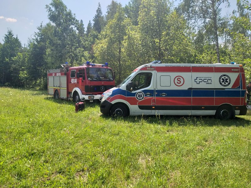 Poparzonego mężczyznę zabrał śmigłowiec Lotniczego Pogotowia Ratunkowego.