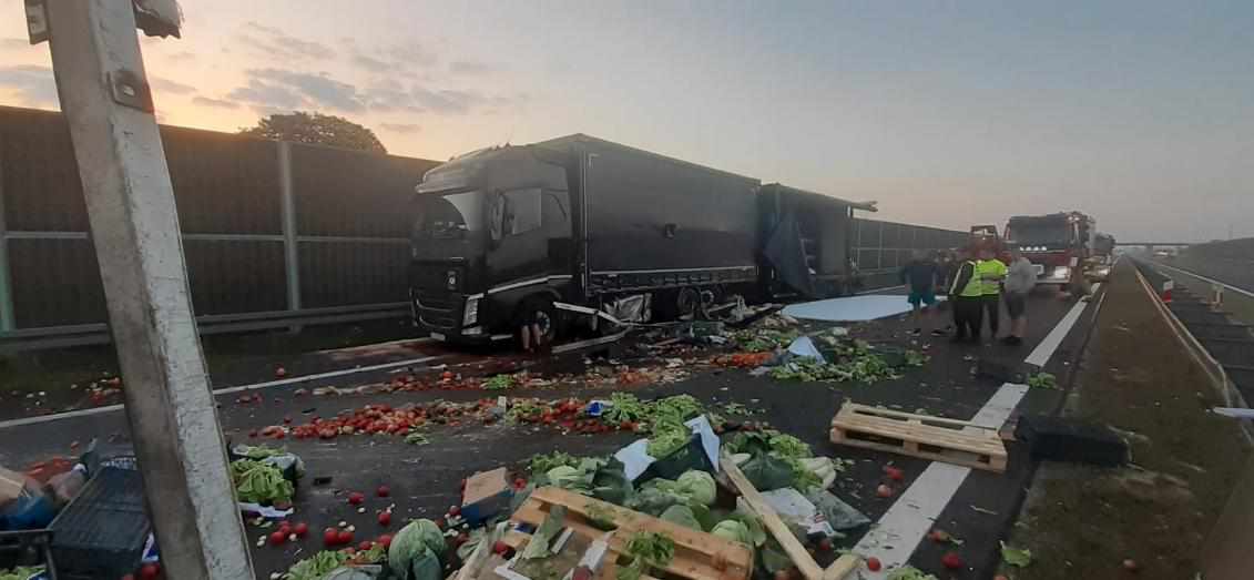 – W miejscowości Zaborów, na pasie ruchu w kierunku Warszawy, doszło do kolizji dwóch pojazdów ciężarowych. Jak ustalili policjanci, kierujący dostawczym mercedesem najechał na tył stojącego na pasie awaryjnym tira, w wyniku czego na całą szerokość jezdni rozsypały się przewożone przez sprawcę warzywa i owoce – podaje nam nadkomisarz Agnieszka Wójcik z Komendy Powiatowej Policji w Grójcu.