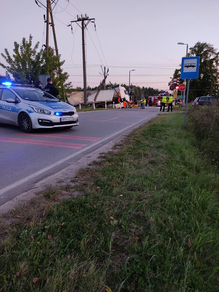 Na przejeździe kolejowym w Sokolnikach Suchych samochód ciężarowy wjechał pod nadjeżdżający pociąg. Ranny został 50-letni maszynista.