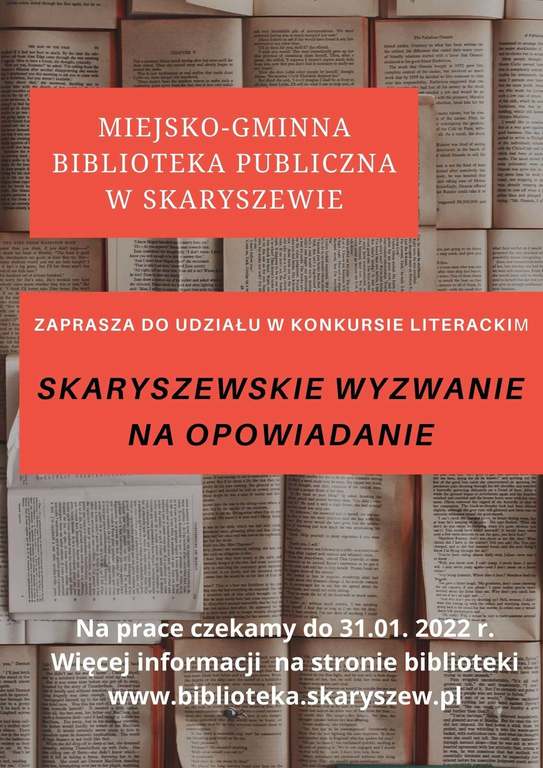 Prace należy składać w Miejsko-Gminnej Bibliotece Publicznej w Skaryszewie lub wysłać na adres e mail : [email protected] do 31.01.2022r .