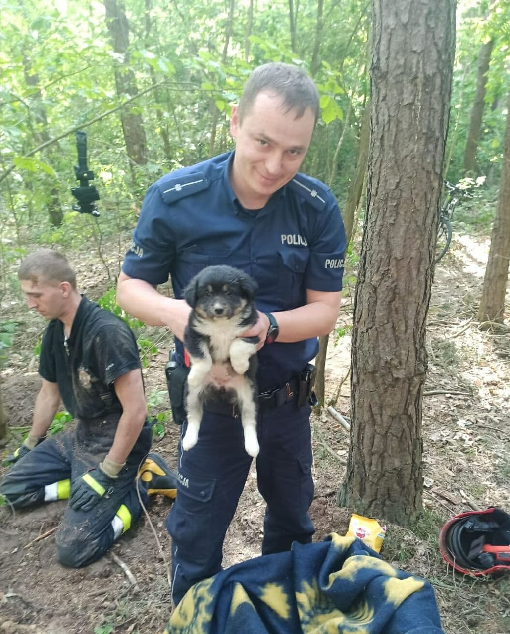 Funkcjonariusze z Komisariatu Policji w Jedlińsku otrzymali niecodzienne zgłoszenie. Z informacji im przekazanej wynikało, że w lesie, w miejscowości Ludwików, w lisiej norze, uwięzione są szczenięta. Wspólnie z druhami Ochotniczej Straży Pożarnej w Jedlińsku udali się we wskazane miejsce.