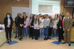 Podczas prelekcji młodzież dowiedziała się jakie naturalne produkty można pozyskać z kompleksów leśnych A także jakie są ich walory zdrowotne i w jakie sposób można je wykorzystać w gastronomii. Uczniowie zadawali prelegentowi liczne pytania na temat zwierzyny łownej i flory leśnej.