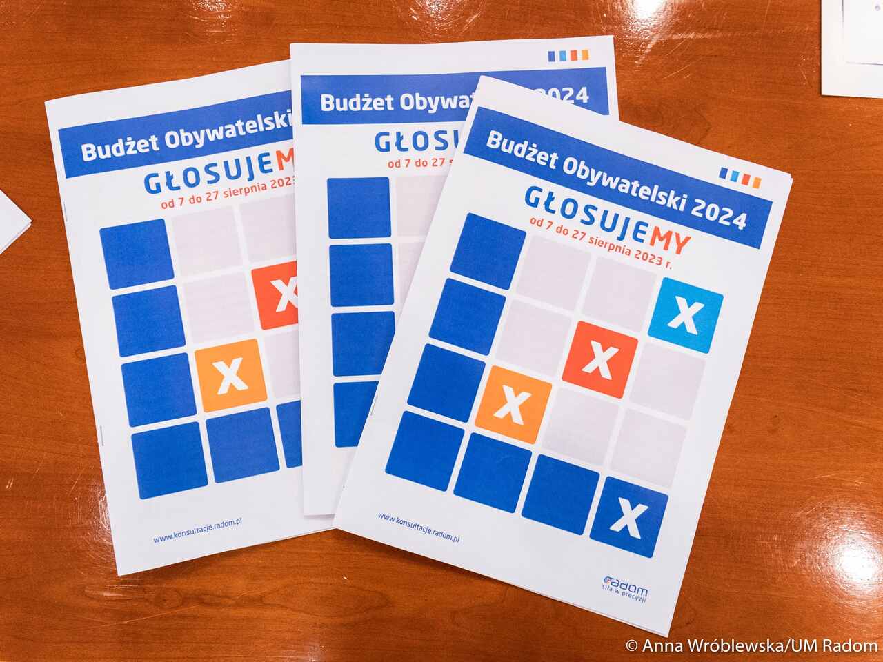 Do dyspozycji są karty do głosowania, na których możemy przyznawać punkty interesującym nas projektom (od 1 do 3). Pamiętajmy, że ważne są tylko głosy oddane przez osoby mieszkające na terenie miasta. Głosować możemy zdalnie przez stronę konsultacje.radom.pl oraz stacjonarnie w trzech lokalizacjach: na ul. Kilińskiego 30 – w Urzędzie Miejskim, w Biurze Obsługi Mieszkańca (pok. 30); na ul. Żeromskiego 53 – w Wydziale Komunikacji Społecznej, Promocji Miasta i Turystyki (pok. 104) oraz pod adresem Rynek 15, gdzie mieści się m.in. Centrum Organizacji Pozarządowych.