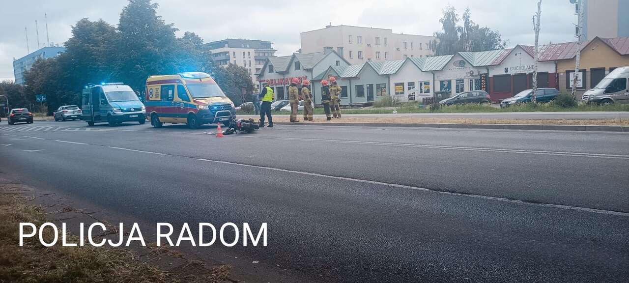 Dziś (wtorek, 13 czerwca) w godzinach przedpołudniowych doszło do groźnego wypadku z udziałem motoroweru i samochodu osobowego na ul. 11 Listopada w Radomiu. Jak przekazuje Komenda Miejska Policji w Radomiu, 23-latka jadąca motorowerem doznała obrażeń głowy.