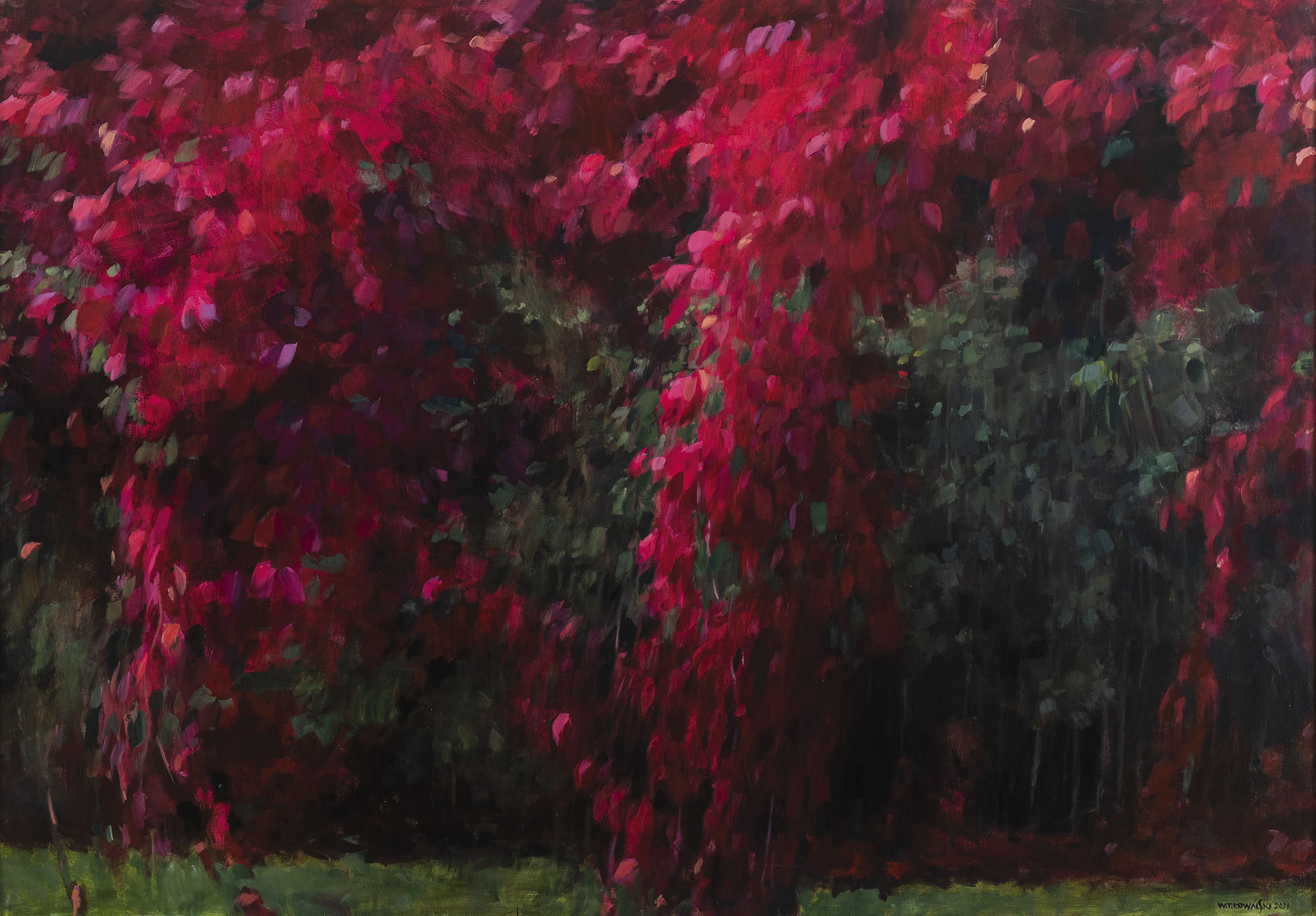 Ekspozycja pt. „Drzewa, krzaki, woda, trochę nieba i pet” – czynna do 5 stycznia 2022 roku – prezentuje najnowsze obrazy artysty. Trzymając się swojej konwencji maluje niezwykłe pejzaże, pełne emocji i ekspresji, inspirując się otaczającą go naturą, choćby tą widzianą z okna swojej pracowni.