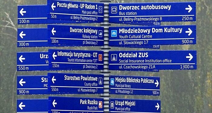 Trzy słupki z 56 tabliczkami kierującymi pieszych do urzędów, placówek kultury, parków i dworców ustawiono przy ruchliwych punktach Radomia. Inwestycję wykonano w ramach budżetu obywatelskiego.