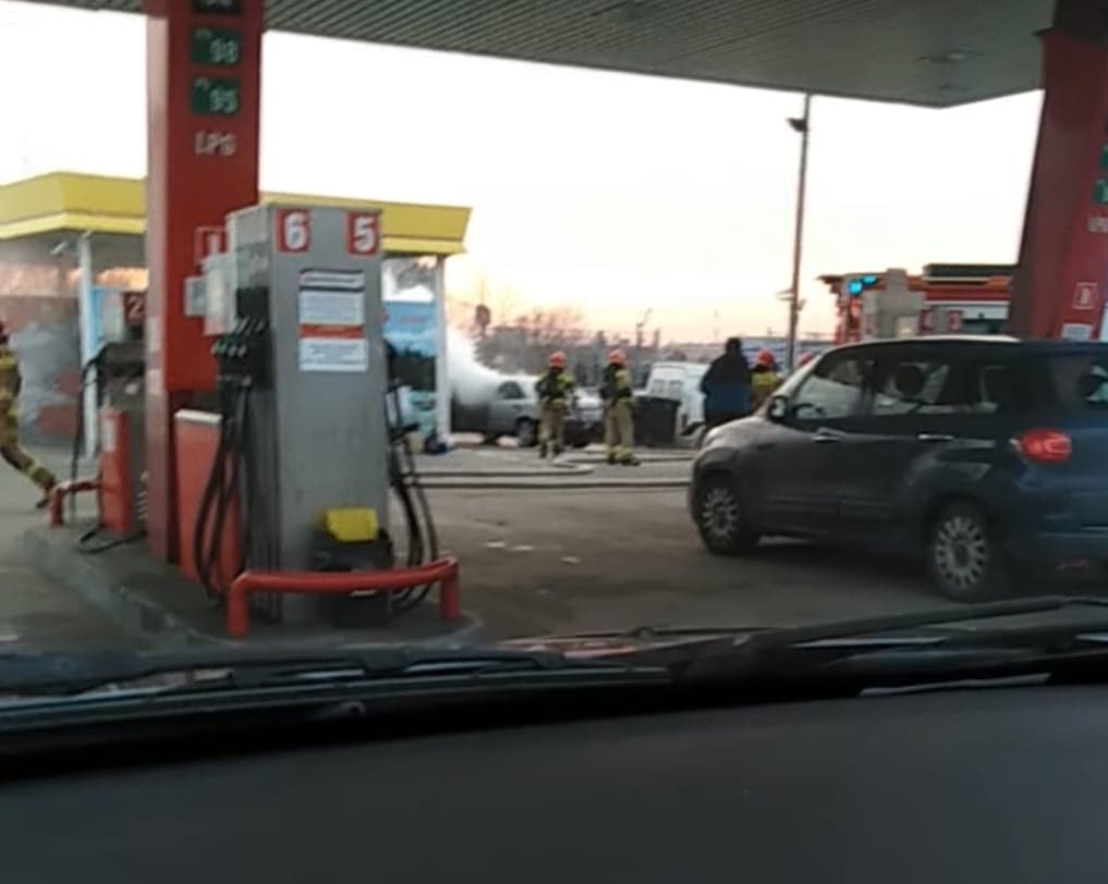 Pojazd znajdował się w bliskiej odległości od dystrybutorów z paliwem. Płonące auto zarejestrował jeden z przejeżdżających obok kierowców.