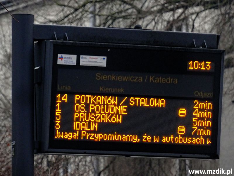 Nowy symbol pojawił się na tablicach informacyjnych Systemu Dynamicznej Informacji Pasażerskiej, przy godzinach odjazdu autobusów. Piktogram oznacza, że w pojeździe, który nadjedzie, za zakup biletu można zapłacić kartą.