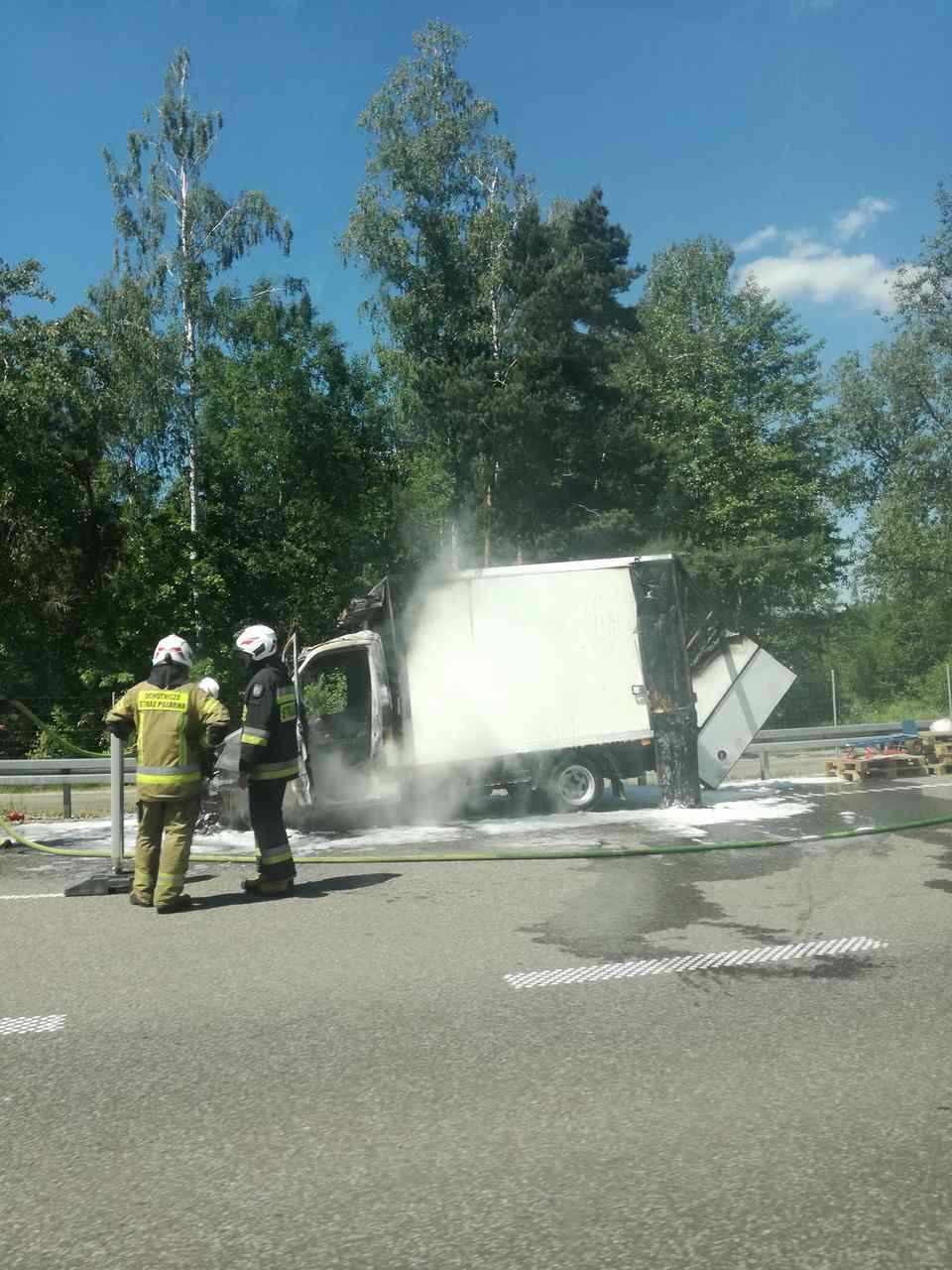 „Po przybyciu na miejsce naszego zastępu zastaliśmy pojazd typu bus z kontenerem objęty cały pożarem. Nasze działania polegały na zabezpieczeniu miejsca zdarzenia, zablokowaniu ruchu na całym pasie, rozwinięciu linii gaśniczej i podaniu przez ratowników w aparatach ochrony dróg oddechowych za pomocą prądownicy pianowej środka pianotwórczego w natarciu na pożar. Po opanowaniu pożaru zastępy strażackie przystąpiły do przelewania pogorzeliska. Na czas działań gaśniczych droga była całkowicie zablokowana” – poinformowała Ochotnicza Straż Pożarna z Orońska.